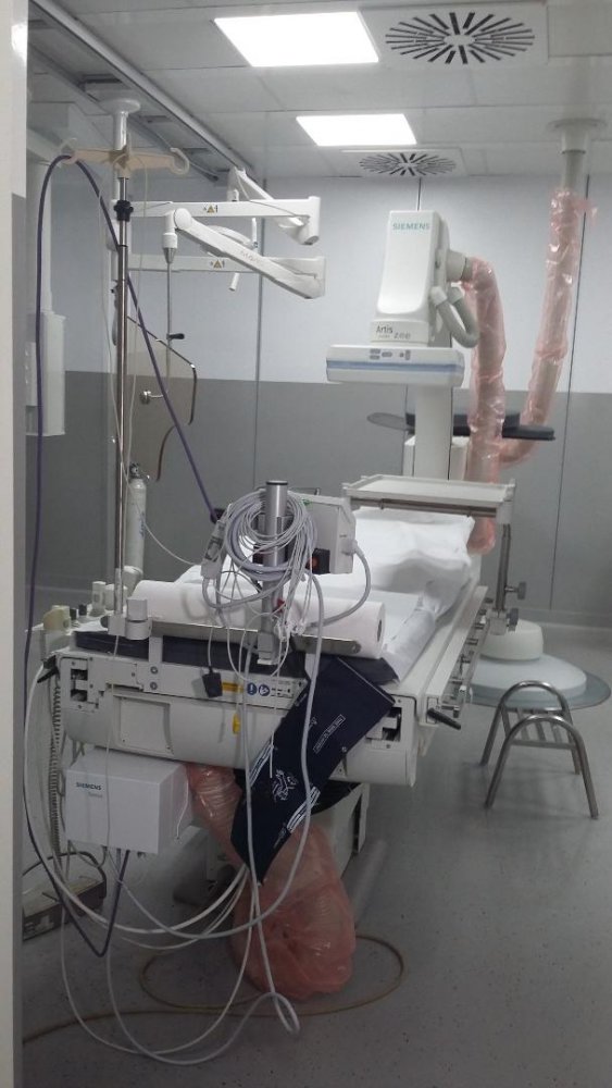 În premieră la Constanţa, acest aparat a fost folosit joi. În sala de operaţii a fost adus un pacient în vârstă de aproximativ 50 de ani, cu cancer colorectal, cu metastaze, care a suportat o chemoembolizare, procedură realizată de către o echipă de medici din cadrul Institutului Clinic „Fundeni”. Deşi pacientul se află într-un stadiu delicat al bolii, iar organismul său nu a reacţionat până acum la chimioterapie, procedura a fost un succes, aşa că specialiştii speră să-i prelungească viaţa cu cât mai mult timp posibil.