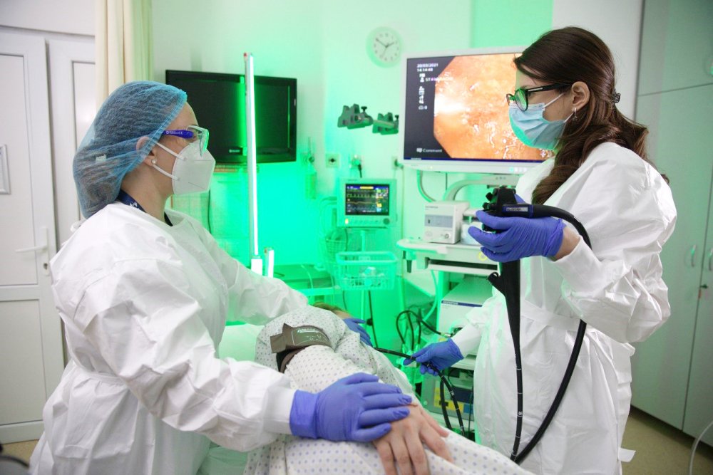 „Atât lichidele, cât și resturile alimentare fac dificilă examinarea completă a întregii mucoase. Așadar, pacientul se prezintă în ziua procedurii nemâncat, nebăut, cu toate documentele medicale. Este primit în sala de endoscopie unde, după anamneză și monitorizarea funcțiilor vitale, se efectuează anestezia locală cu spray cu xilină. Ulterior se așează în decubit lateral stâng și este rugat să prindă între dinți o piesă bucală prin care ulterior va fi introdus endoscopul. Urmează apoi efectuarea endoscopiei, procedură ce durează în medie două minute. Investigația este neplăcută, dar nu este dureroasă. Este neplăcută pentru că involuntar pentru pacient apare reflexul de vărsătură. Pe tot parcursul investigației pacientul poate respira normal, însă poate resimți o ușoară distensie abdominală, deoarece în timpul intervenției se introduce puțin aer”, a explicat dr. Caraivan.